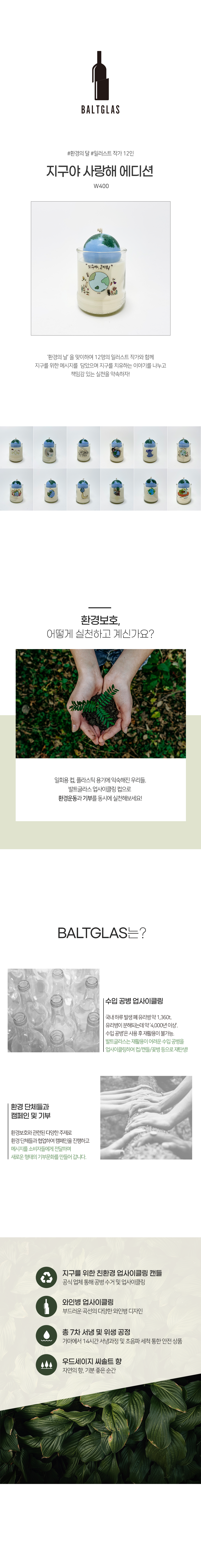 발트글라스 지구야사랑해 캔들 투명와인[디자인랜덤]
