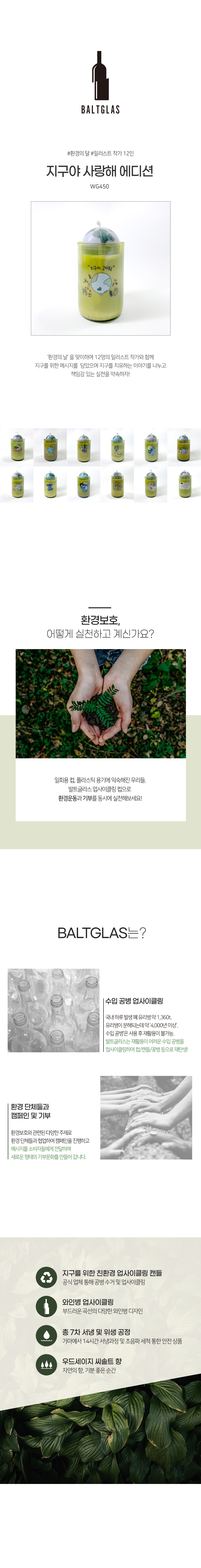 발트글라스 지구야사랑해 캔들 그린와인[디자인랜덤]
